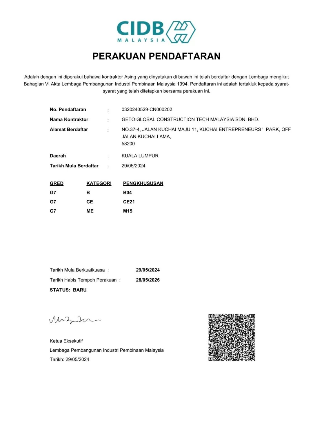 志特新材作为中建八局的长期合作伙伴,已经在全球合作了近百个项目;凭借卓越的技术实力和项目管理能力,志特新材已获得马来西亚CIDB G7认证(马来西亚建筑总承包最高资质),可承接各类建筑项目。