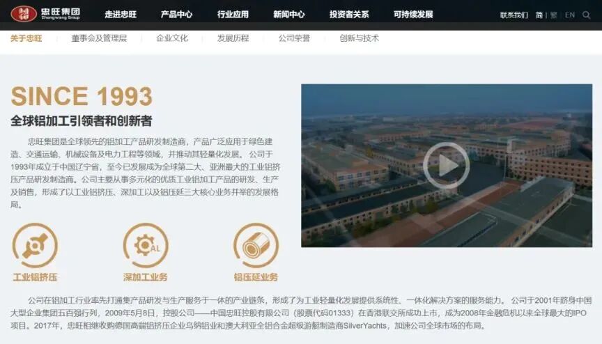 90年代的中国,房地产刚刚起势。靠给辽宁本地钢铁厂生产耐火涂料成功赚得人生第一桶金的刘忠田眼光敏锐的从中嗅到了商机,1993年与香港威力旺公司合资成立辽阳忠旺铝材有限公司;港资身份不仅为企业节省了税款,也为日后中国忠旺(辽宁忠旺前身)港股上市打下基础。靠着房地产业东风,忠旺门窗铝材生意做得风生水起,1996年产能上了十万吨。2001年,忠旺集团营业额破1亿元,公司也跻身中国大型企业集团五百强行列。2002年,刘忠田力排众议,将建筑铝材转型为工业铝材,瞄准我国特大型铝合金型材依赖进口的市场空白。不惜投入20多个亿流动资金砸在厂房建设和设备定制上。